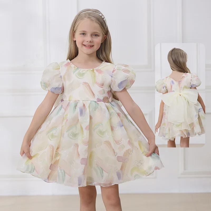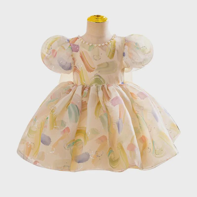 Оденьте своего малыша в это очаровательное и яркое платье, созданное специально для маленьких девочек.. Это платье с восхитительными рукавами-фонариками и очаровательным бантом излучает элегантность принцессы.. Изготовлен из мягкого полиэстера, обеспечивает удобную посадку и долговечность для повседневной носки или особых случаев.. Красочный дизайн добавит игривости и станет прекрасным дополнением к гардеробу вашего малыша.