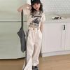 Модный летний костюм-двойка для девочек 2024 года: Стильный топ с короткими рукавами и повседневные брюки