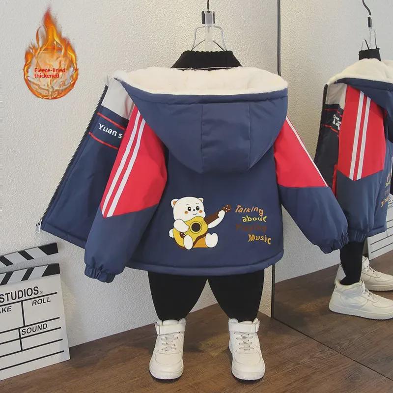 Представляем нашу стильную и теплую флисовую парку с капюшоном для мальчиков, которая идеально подойдет для стильного противостояния холодной погоде.. Эта модная детская куртка имеет длинные рукава для полной защиты и изготовлена из высококачественного хлопкового материала, обеспечивающего как комфорт, так и долговечность.. Эта парка идеально подходит для повседневной носки и сочетает в себе практичность и модный стиль, что делает ее обязательным дополнением к гардеробу любой молодежи.