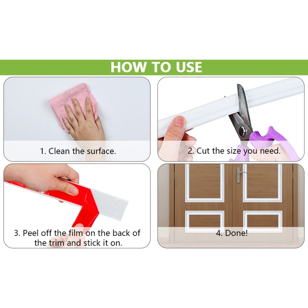 - Инструкция DIY: Наш метод установки этой отделки молдинга методом отклеивания и приклеивания прост и требует всего 3 шагов, включая резку, отклеивание и приклеивание, никаких других инструментов не требуется, что делает установку простой и удобной.