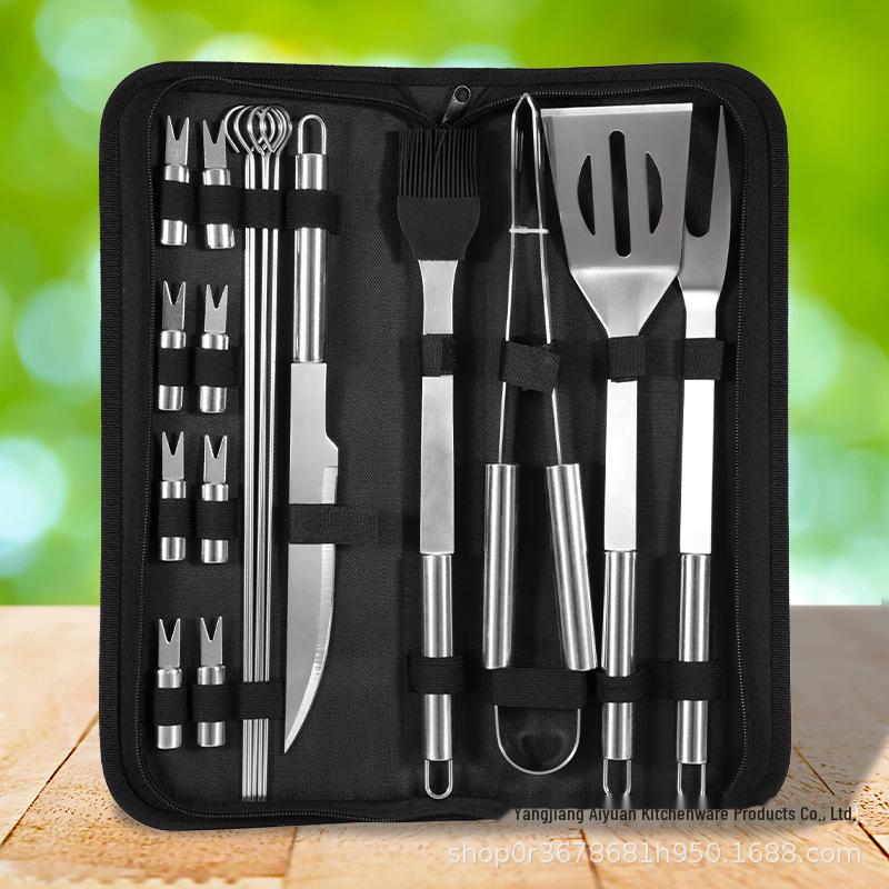 Портативный набор инструментов для барбекю из нержавеющей стали для дома, отдыха на природе и кемпинга – включает нож и вилку