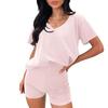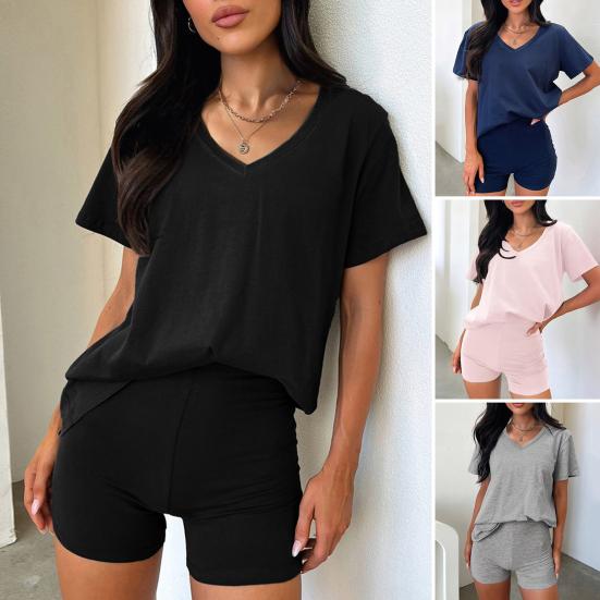 Удобная посадка: Этот костюм с эластичными шортами и топом с короткими рукавами и V-образным вырезом в стандартной версии обеспечивает удобную и подчеркивающую фигуру посадку.. Дизайн сочетает в себе практичность и моду, что делает его идеальным для повседневной носки или особых случаев.
