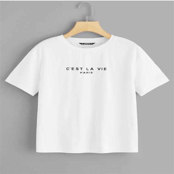 Летний топ с круглым вырезом и принтом, модные повседневные милые женские футболки из чистого хлопка с короткими рукавами