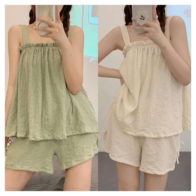 Женская летняя короткая пижама из двух частей на подтяжках, тонкая, милая, милая, хлопковая, женская, домашняя одежда без рукавов, свободная, мягкая, домашняя одежда