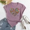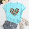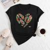 Летние женские футболки больших размеров с принтом в виде перьев и сердец, свободные, с круглым вырезом, повседневные, из чистого хлопка, с короткими рукавами, женские