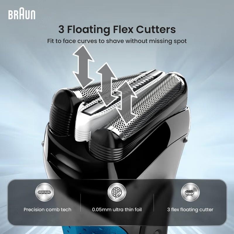Braun Электробритва 3010S Высокоскоростной мотор Плавающие 3 лезвия Водонепроницаемая по всему корпусу Бритва