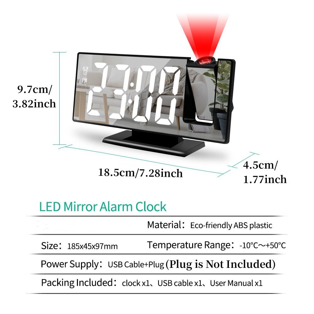 Цифровой будильник, проекция с вращением на 180° и временем, температурой и повтором, настольные часы, 12/24 ч, USB-проектор, светодиодные часы