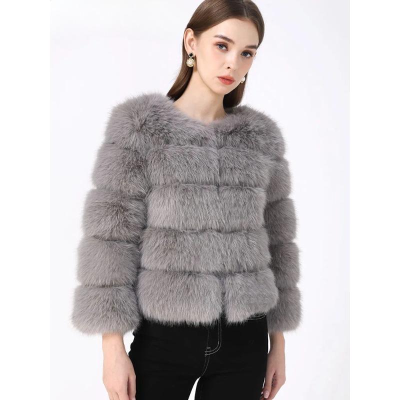 Норковые пальто, женское пальто из искусственного меха, зимнее пушистое короткое пальто, куртка из искусственного меха, женская пушистая мода, роскошный кардиган с круглым вырезом и длинными рукавами, топы, уличная куртка