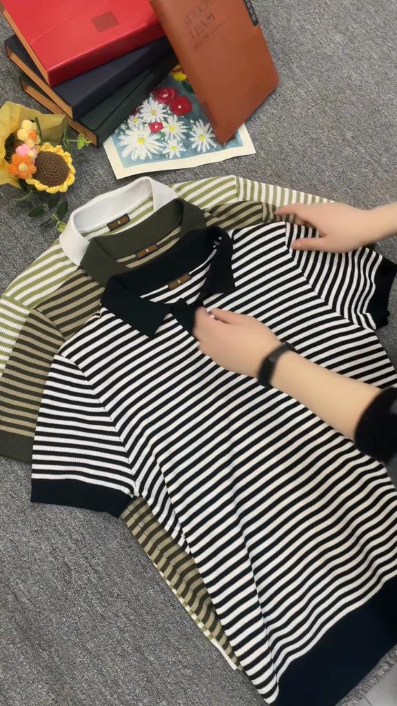 AIOPESON Мужская трикотажная рубашка поло в полоску с V-образным вырезом и коротким рукавом, летний трикотажный дышащий топ поло для мужчин