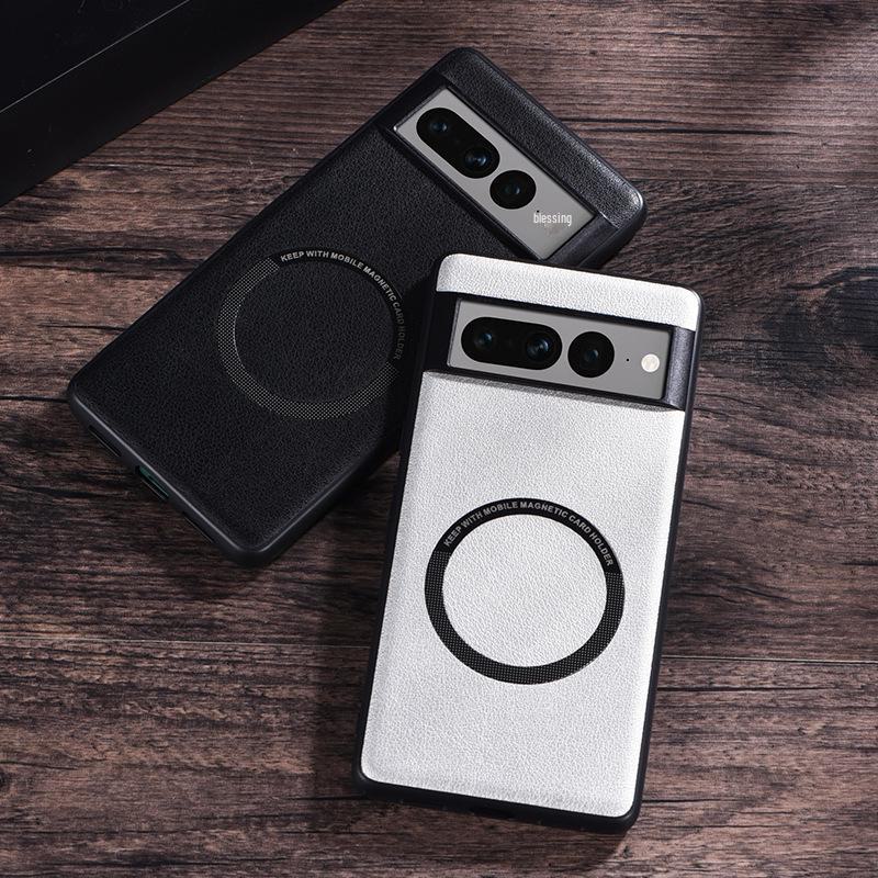 Чехол из однотонной кожи с магнитным покрытием для Google Pixel 9 Pro/6/7/8 — защитный чехол с полным покрытием