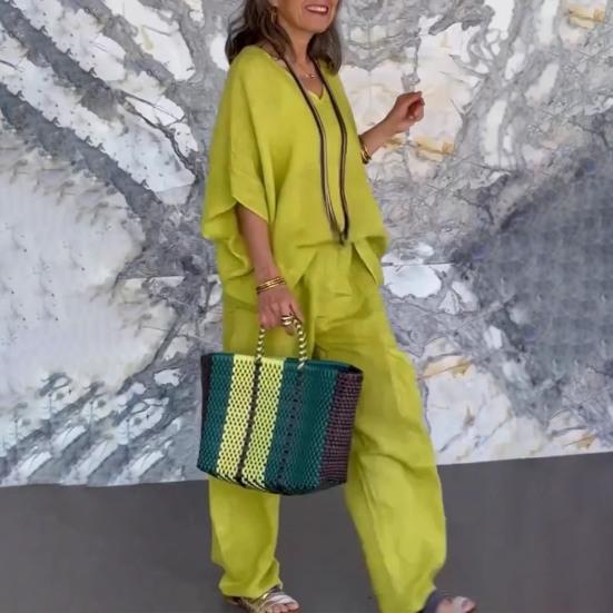 Универсальный костюм: Этот женский комплект из двух предметов, изготовленный из дышащего полиэфирного волокна, имеет свободный крой для комфорта и стиля.. Идеально подходит для разных случаев, прекрасно дополняет разные типы фигур и возрасты.