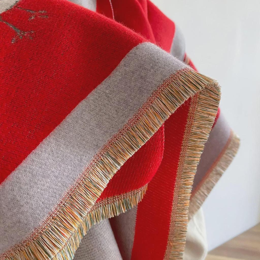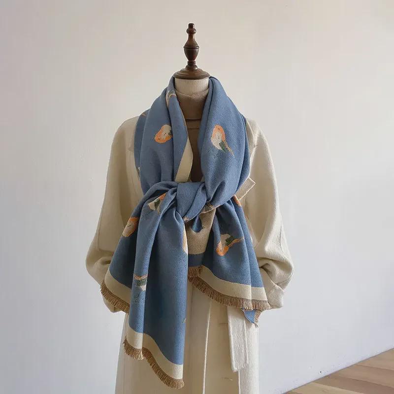 Женский корейский шарф из искусственного кашемира 2023 года - шаль с принтом птиц, толстый теплый аксессуар для верхней одежды