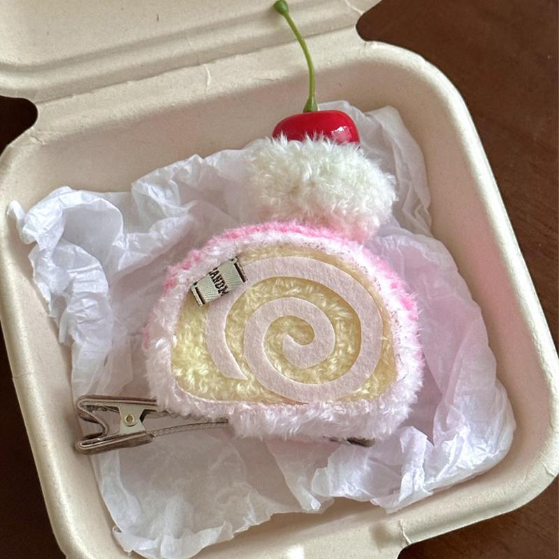 Плюшевое ожерелье в виде вишни в форме торта, заколка для волос в виде клубничного торта, серия «Послеобеденный чай», подвеска на цепочку для свитера и сумки в виде десерта