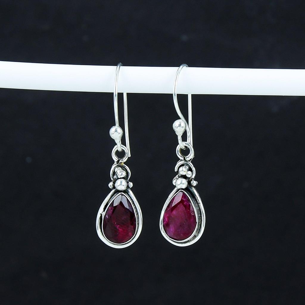 Изящные серьги с рубинами из кашмирского камня, серьги из стерлингового серебра 925 пробы, серьги-подвески ручной работы в стиле бохо из серебра, подарок на годовщину