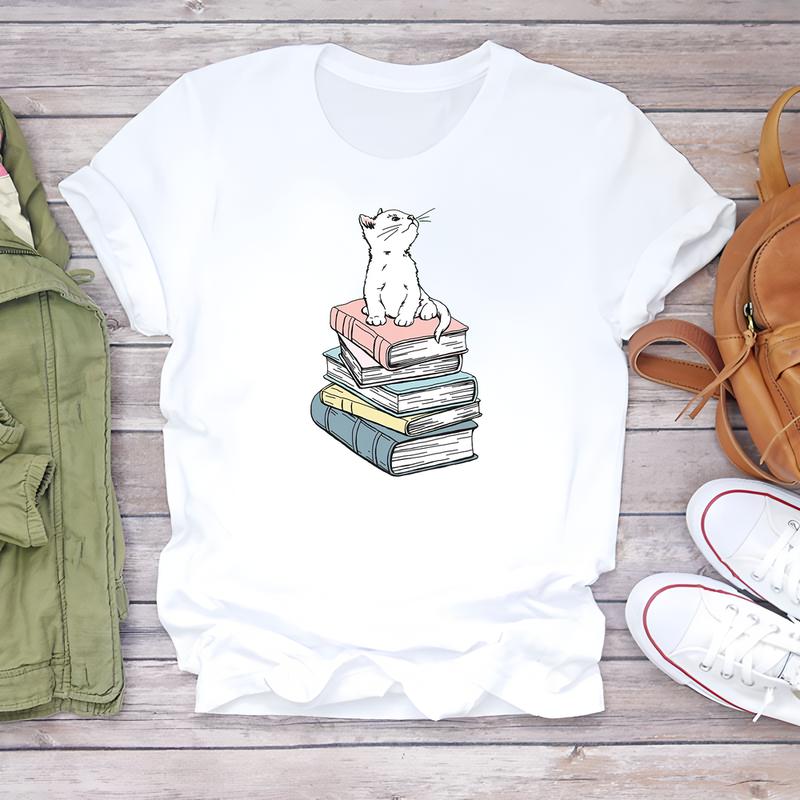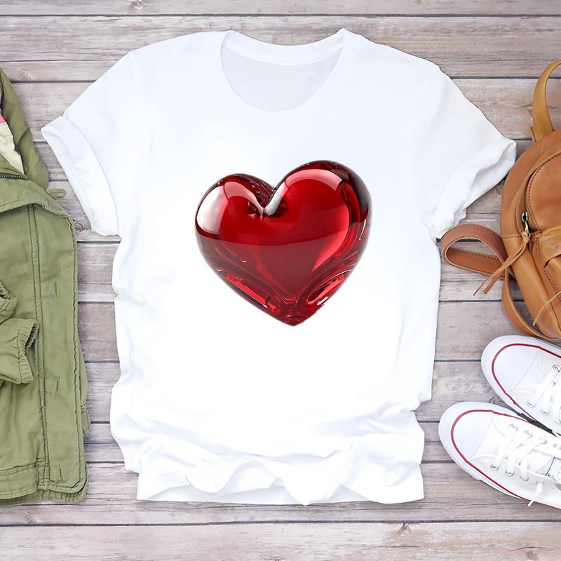 Милая женская футболка с принтом, летний стиль, короткий рукав, идеально подходит для ежедневного модного ношения.