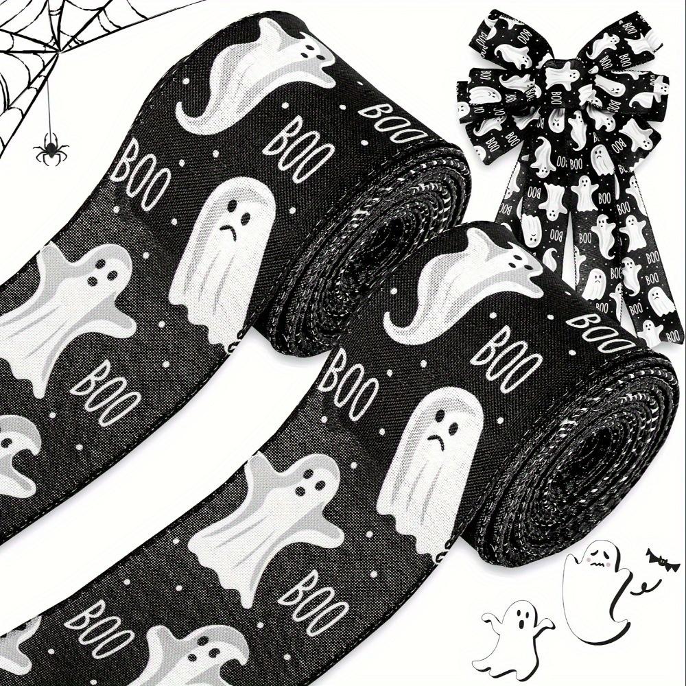 2 рулона ленты с проволочным краем в стиле «Привидение на Хэллоуин», классический стиль, черная белая лента для поделок на Хэллоуин, для изготовления венков, бантов, подарочной упаковки своими руками