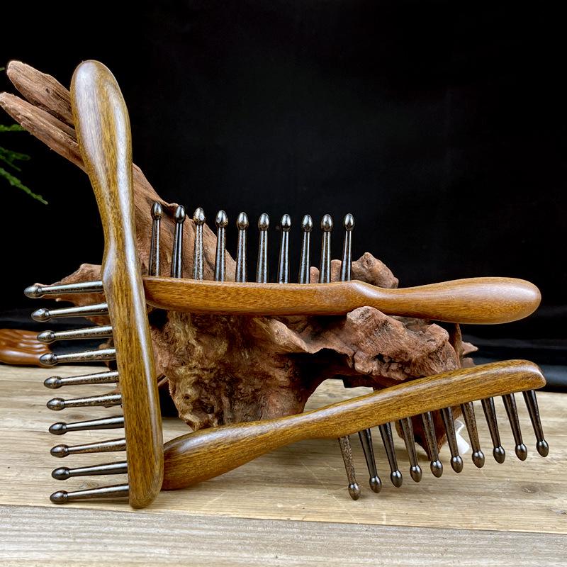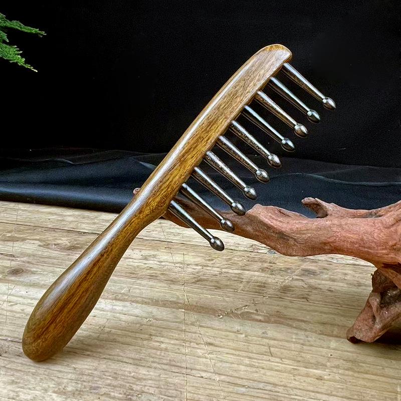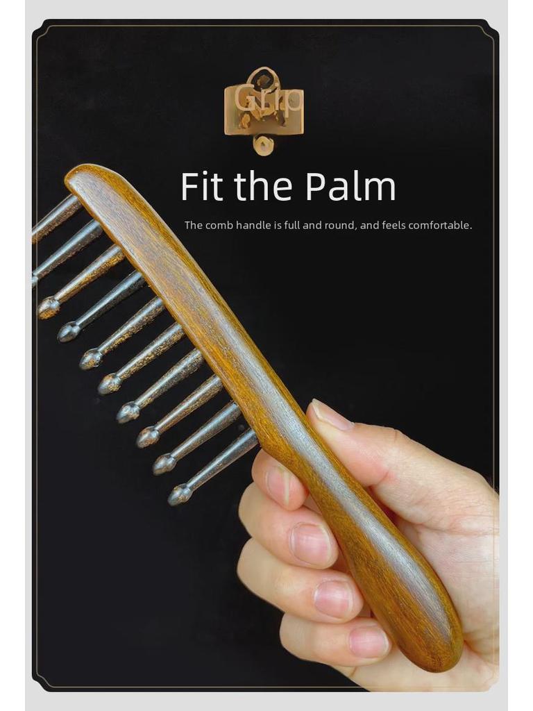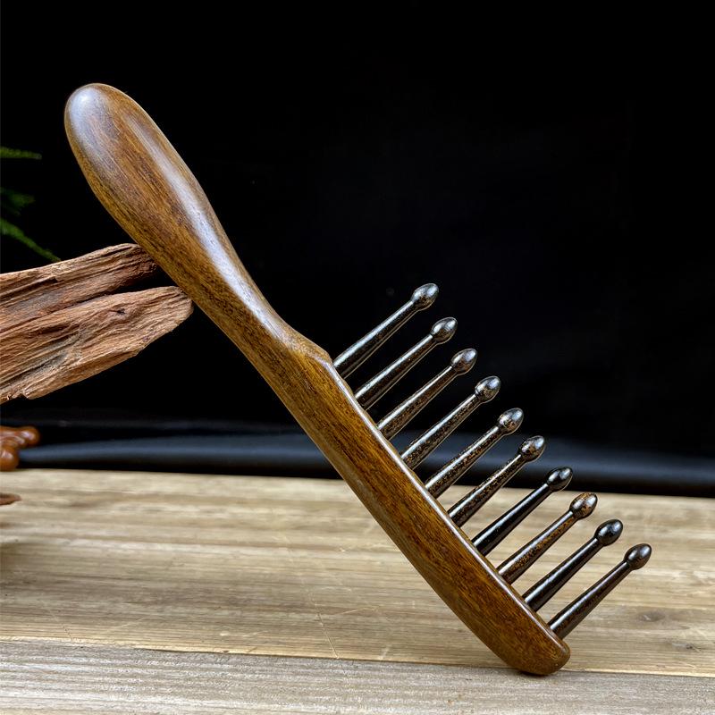 МодельМассажная расческа с зубцами из сандалового дерева и круглой ручкой