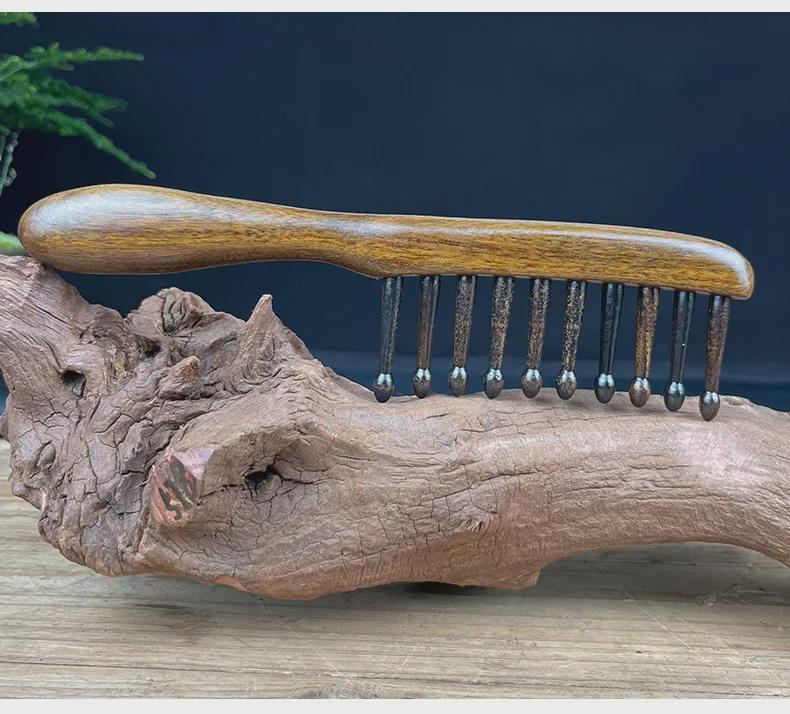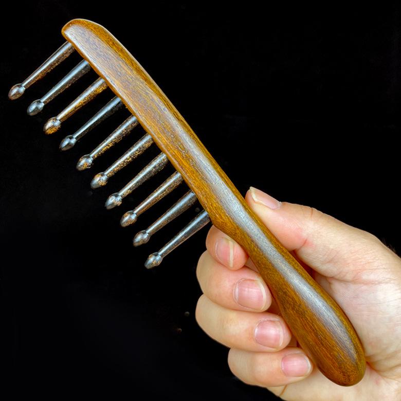 Расческа для вьющихся волос из сандалового дерева с широкими зубьями и круглой ручкой для меридионального массажа