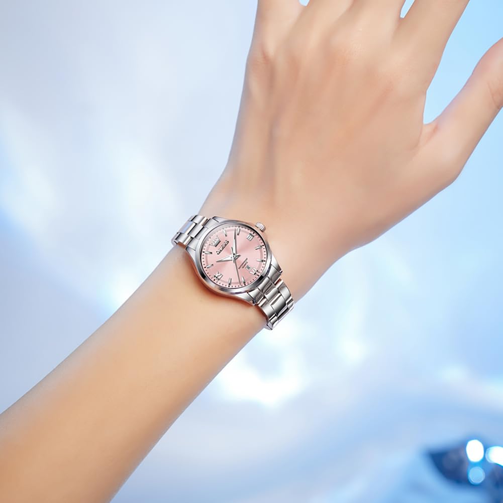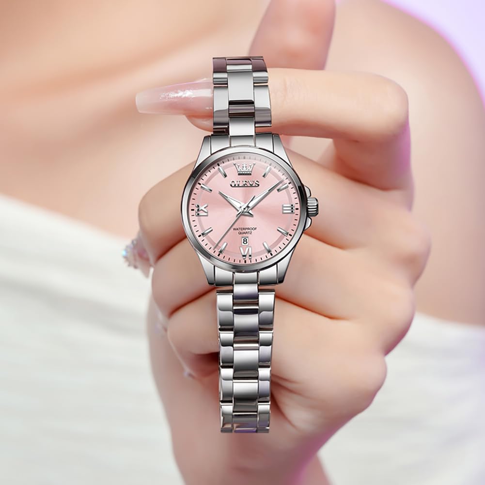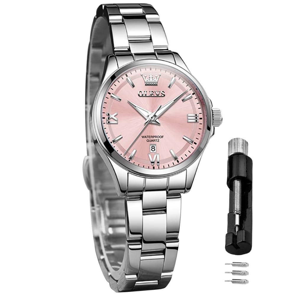 OLEVS Японская нержавеющая сталь Классические светящиеся 30M Водонепроницаемые Бизнес-часы для Розовые Женские часы, Кварцевые, Ремешок, Циферблат, Функция, Водонепроницаемые, Женские