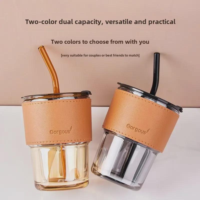 Стакан для воды из бамбукового стекла с крышкой и трубочкой — портативный, стильный и идеальный для студентов