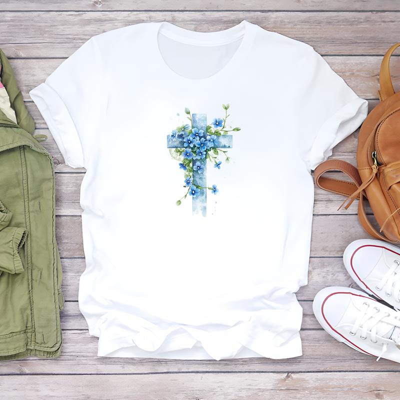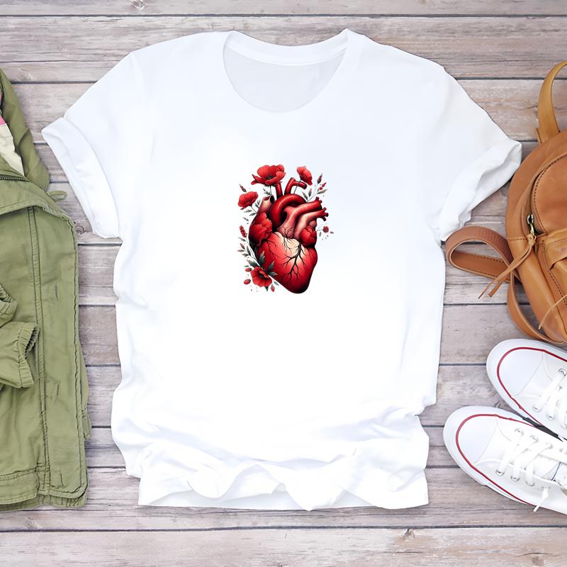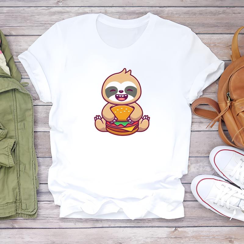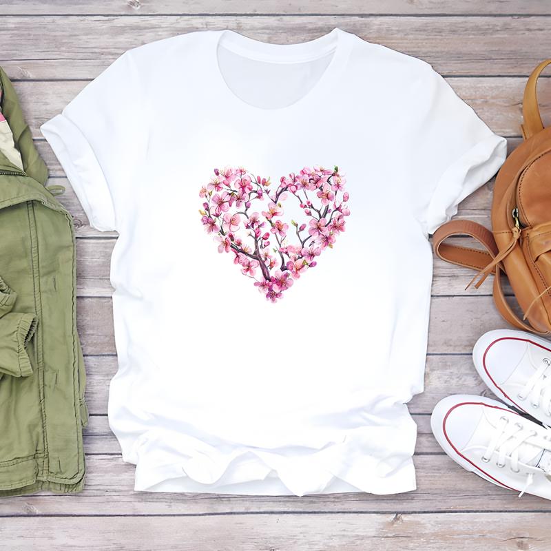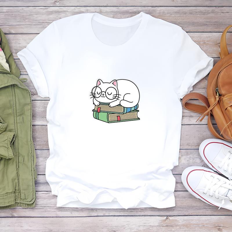 Футболка с симпатичным узором, летний повседневный стиль, модный женский топ с коротким рукавом.