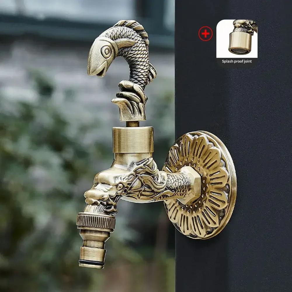 Антикварный резной кран из латуни, наружные краны для стиральной машины, роскошный кран для туалета, настенный кран для сада