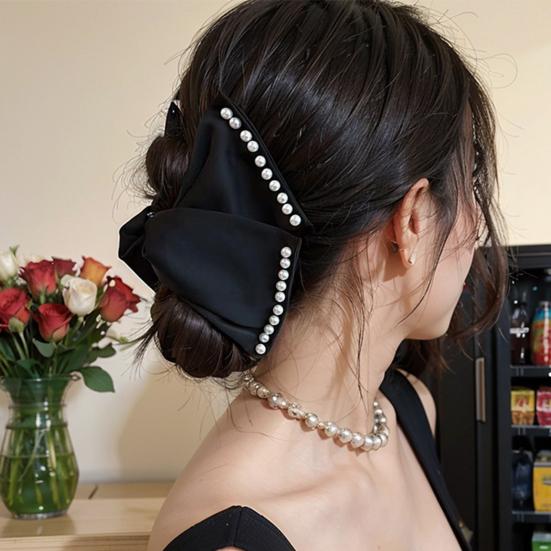 Модный дизайн: Заколка-краб выполнена в модном черном стиле с бантом, украшенным сверкающими стразами, что добавит нотку гламура любому образу.. Элегантный дизайн делает его универсальным аксессуаром, который подойдет к разным цветам волос и стилям одежды.