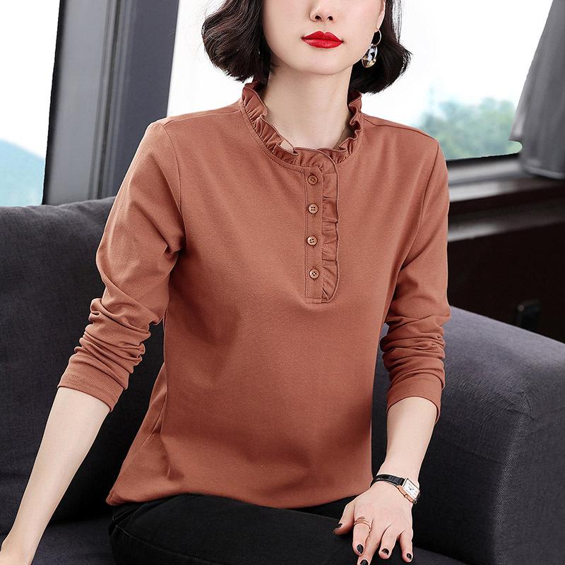 Базовые выпуски футболок женские среднего возраста для мам осенние топы футболка женская с длинными рукавами внутренняя тонкая секция нижняя рубашка Tide