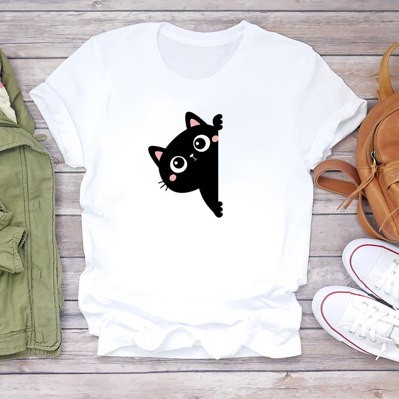 Футболка с симпатичным узором, женская летняя повседневная одежда, модный стиль с коротким рукавом.