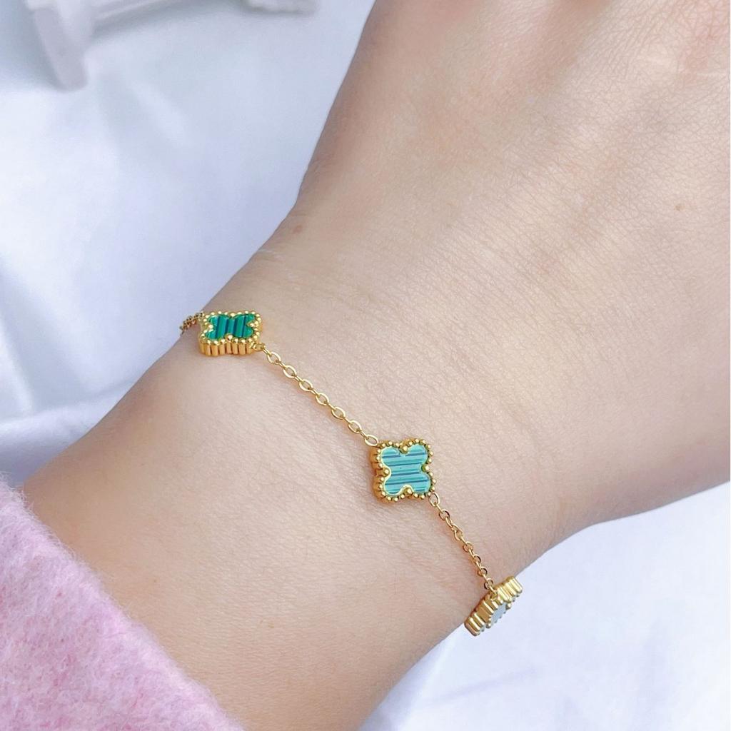 Двусторонний женский браслет Lucky Straw, модный изысканный браслет из 18-каратного прочного клевера с четырьмя листами