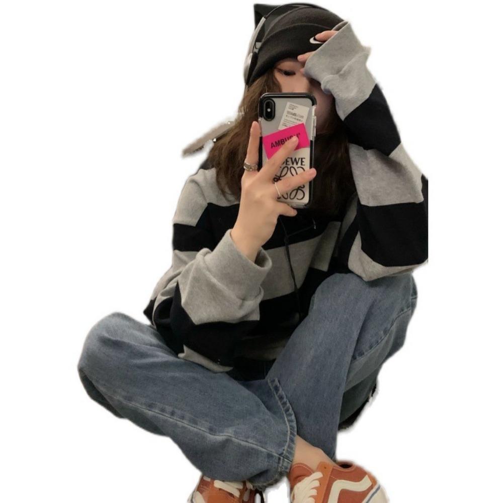 Полосатая толстовка с капюшоном, женская, с длинными рукавами и круглым вырезом, пуловер