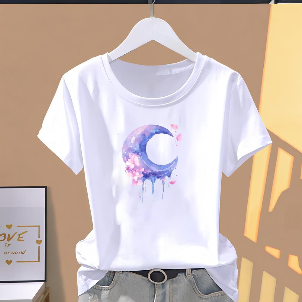 Модная летняя футболка с модными принтами, симпатичный и стильный топ с коротким рукавом для женщин.
