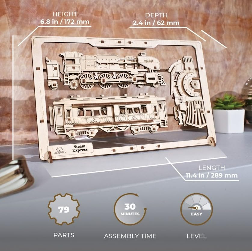 Ugears Steam Express Puzzle 70207 Деревянный 3D Не требуется клей или инструменты Craft 2.5D