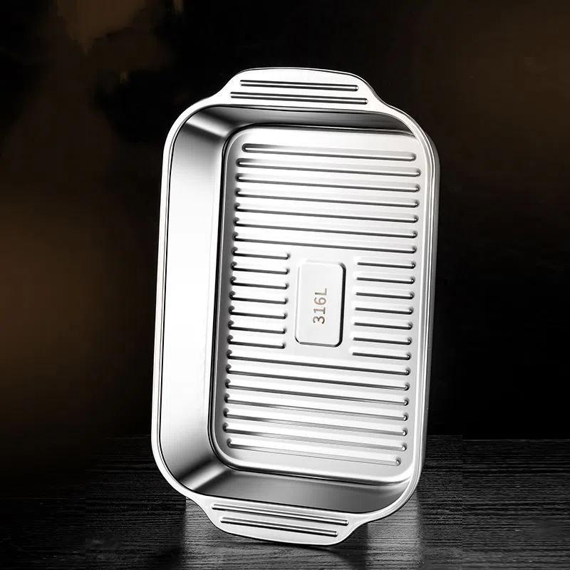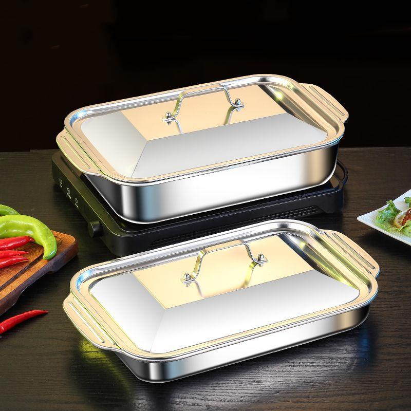 Углубленный противень из нержавеющей стали, утолщенная прямоугольная антипригарная тарелка для рыбы с крышкой, тарелка для морепродуктов, двойная тарелка для ушей