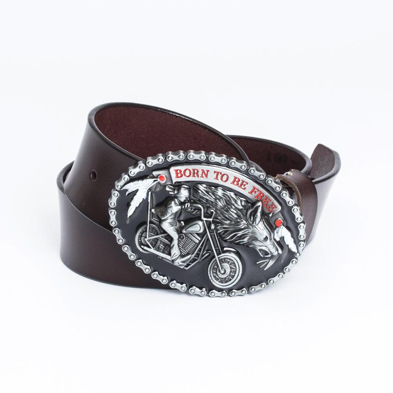 Ремень с пряжкой из сплава Big Wolf Head, двухслойный ремень из коровьей кожи, повседневный ремень из денима с гладкой пряжкой