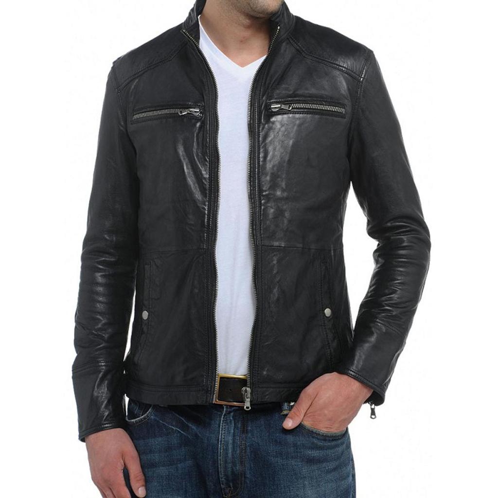 SKINOUTFIT Мужская куртка из натуральной кожи ягненка черного цвета, стильная байкерская куртка-бомбер, верхняя одежда MJ 94