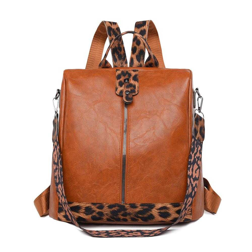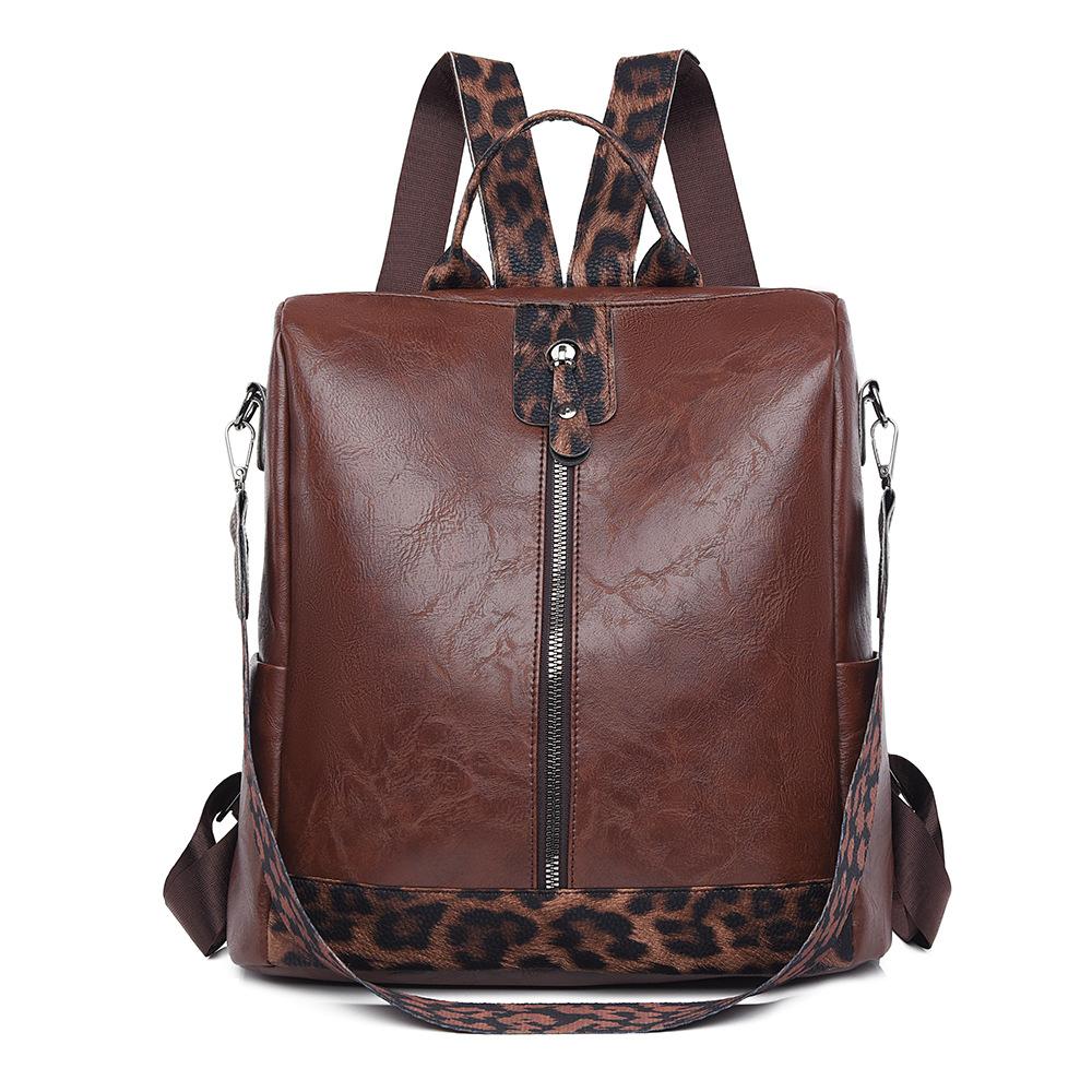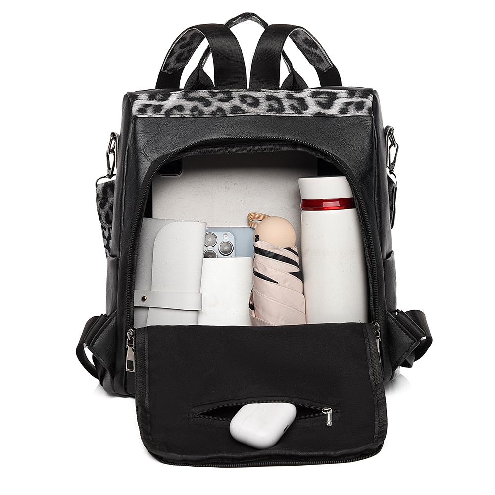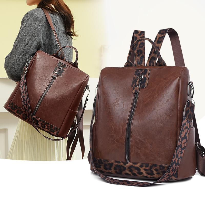 Женский мягкий кожаный рюкзак с леопардовым принтом, противоугонный рюкзак