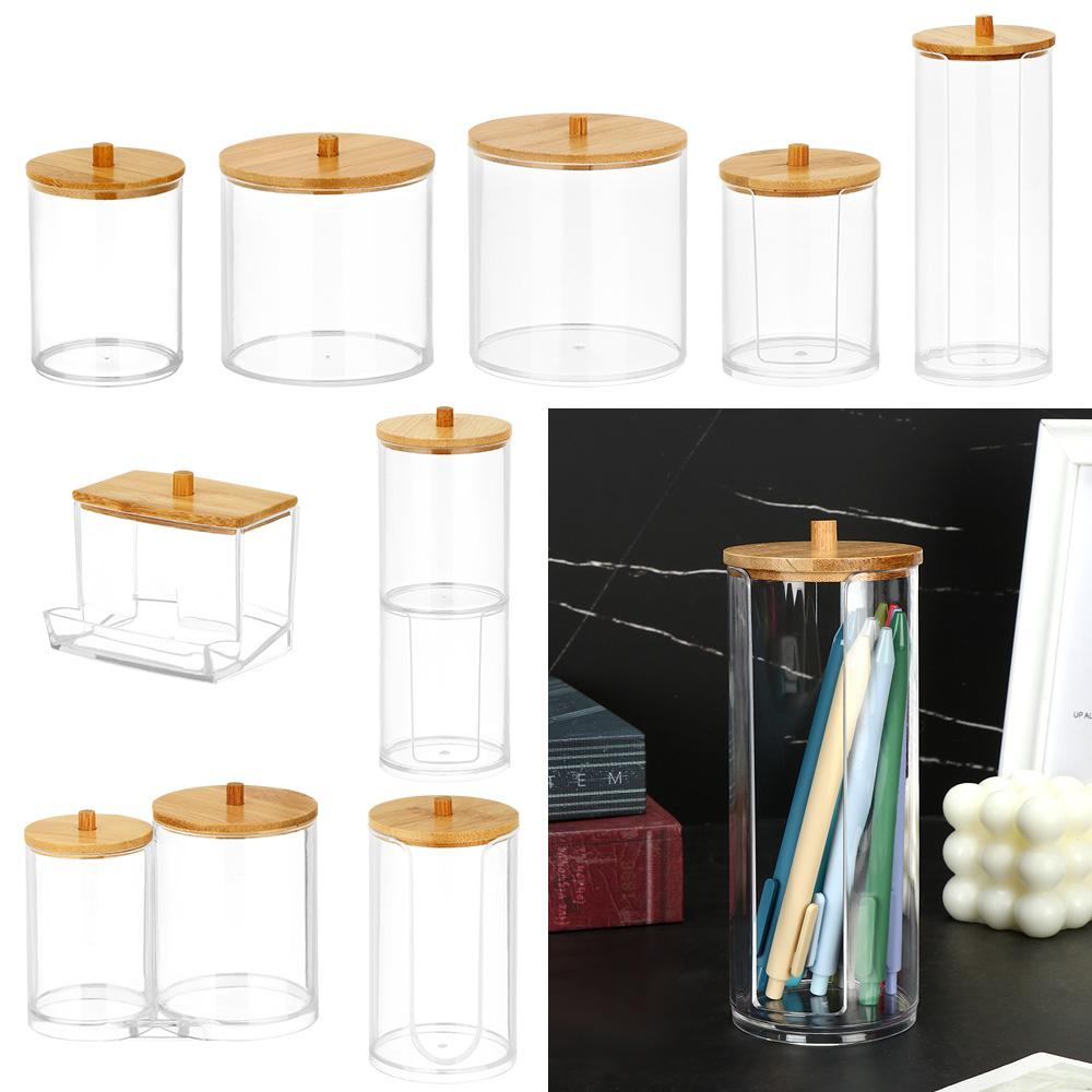 Контейнер для хранения прозрачных ватных дисков с бамбуковой крышкой, бутылка для ватных палочек