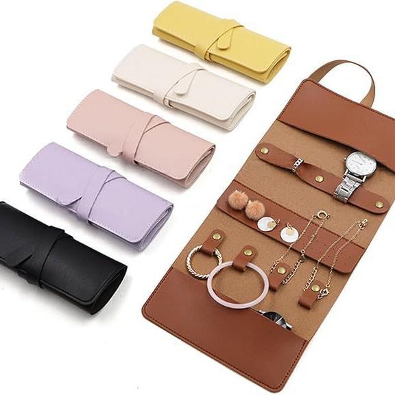 Кожаный дорожный футляр для ювелирных изделий: Прочная складная сумка для хранения с застежкой-молнией и множеством карманов.
