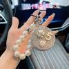 Корейский брелок-зеркало для макияжа «Камелия», украшенное бриллиантами, с ниткой бусин