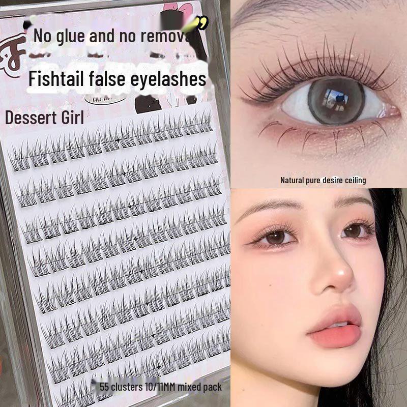 Самоклеящиеся натуральные ресницы Feixi «рыбий хвост» без клея — набор из трех прозрачных стержней