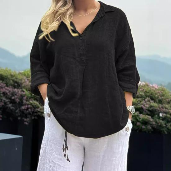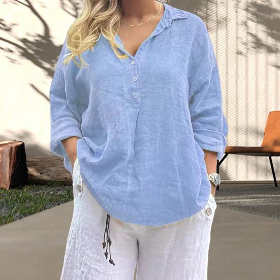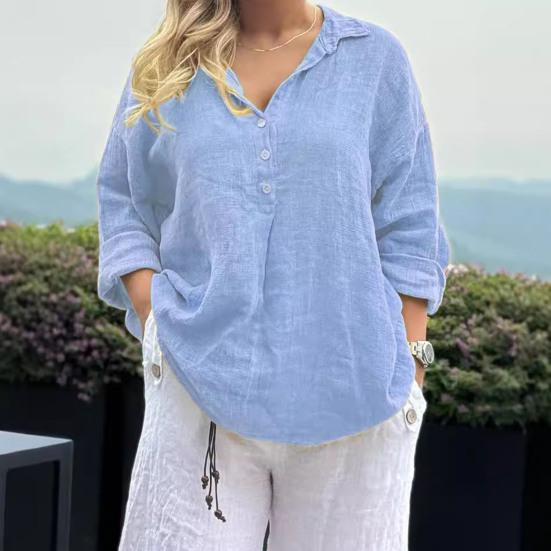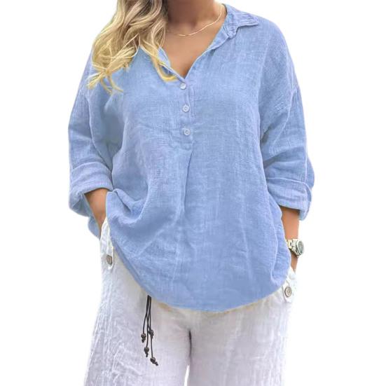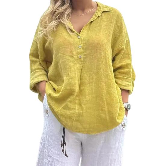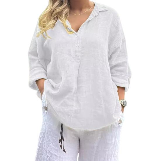 Представляем нашу женскую рубашку, изготовленную из высококачественного хлопкового льна, дышащего и приятного для кожи.. Свободный крой подходит для разных типов фигур, предлагая шикарный и повседневный стиль, необходимый для гардероба каждой женщины..