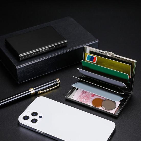 Прочная конструкция из нержавеющей стали: Изготовленный из высококачественной нержавеющей стали, этот держатель для кредитных карт обеспечивает превосходную долговечность по сравнению с пластиковыми или алюминиевыми аналогами.