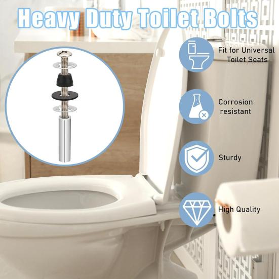 Универсальное использование: Идеально подходит для дома, ванной комнаты, путешествий, общежитий или гостиниц, наш винт для сиденья унитаза из нержавеющей стали обеспечивает удобство и надежность, куда бы вы ни пошли. Наслаждайтесь комфортным и беззаботным посещением туалета с нашими премиальными