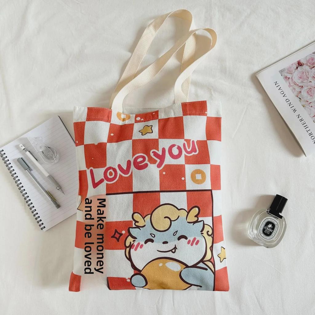 Праздничная сумка из холста с драконом: Большая вместительная новогодняя студенческая сумка через плечо
