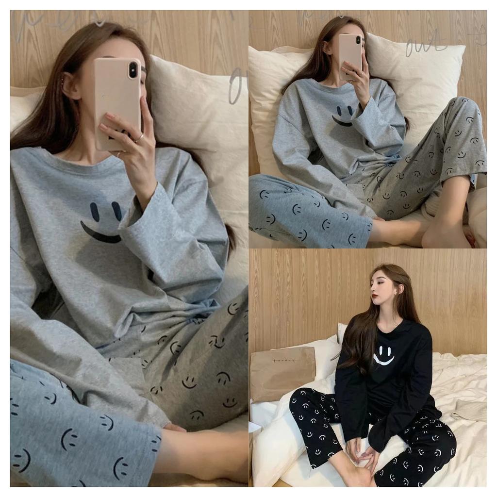 Осенне-зимняя пижама женский костюм из двух частей с длинными рукавами смайлик для студентов новая домашняя одежда