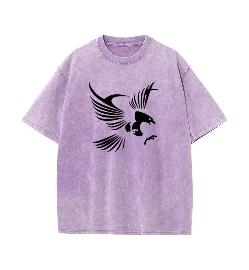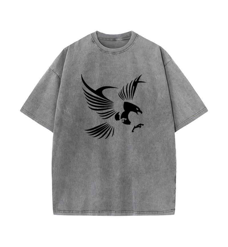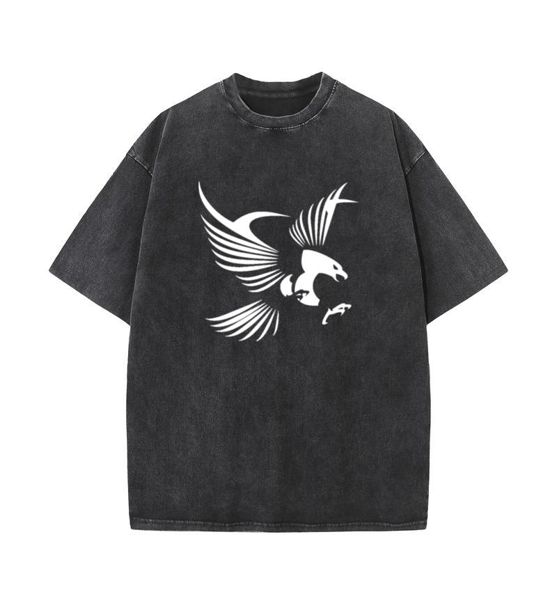 2025 Лето 100% хлопок стираный Old Craft свободная футболка большой размер О-образный вырез свободная мужская футболка с принтом орла