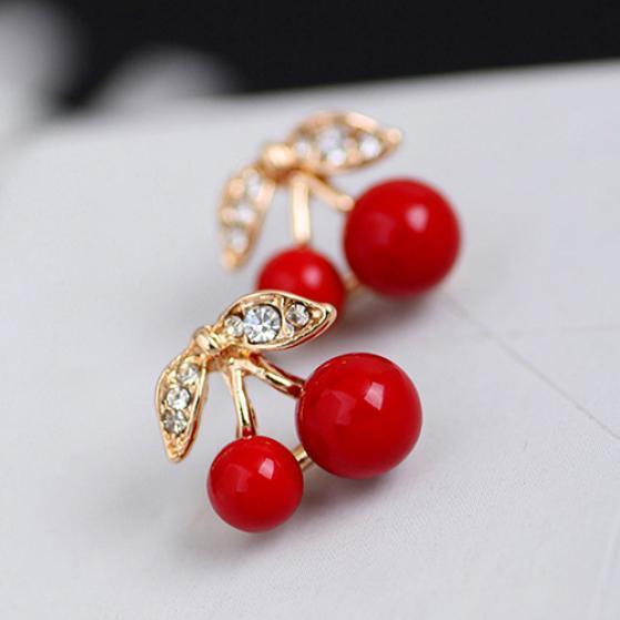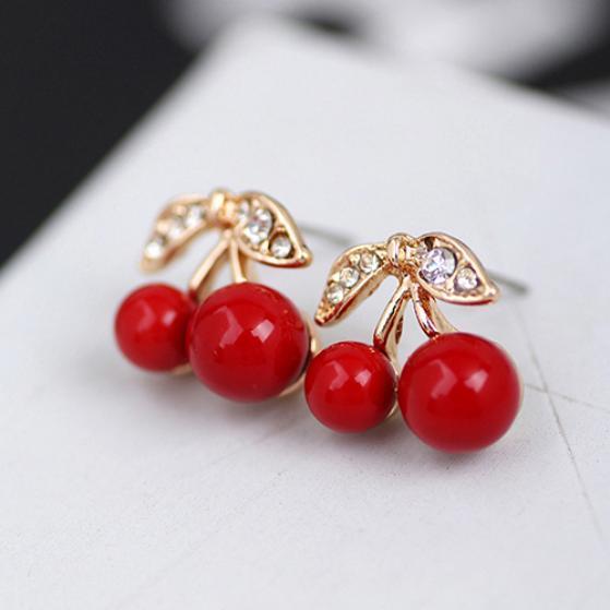 Женские двойные вишни, красные прозрачные серьги-гвоздики, бусины из сплава и листьев, серьги, подарки