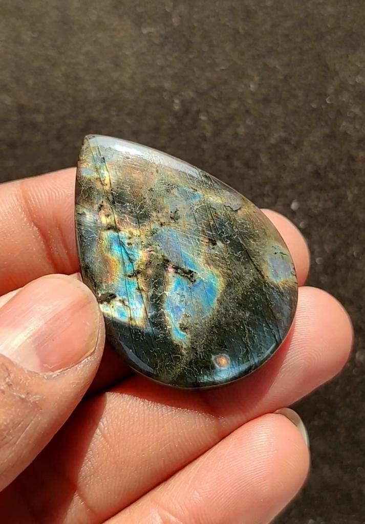 Большой натуральный драгоценный камень-кабошон лабрадорита цвета «Голубой огонь», 64,90 карата, размер лабрадорита 44x31x5 мм.