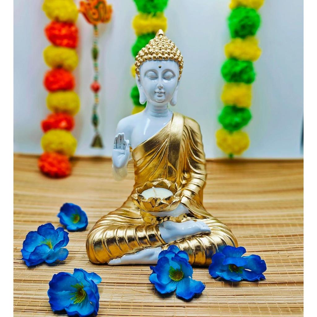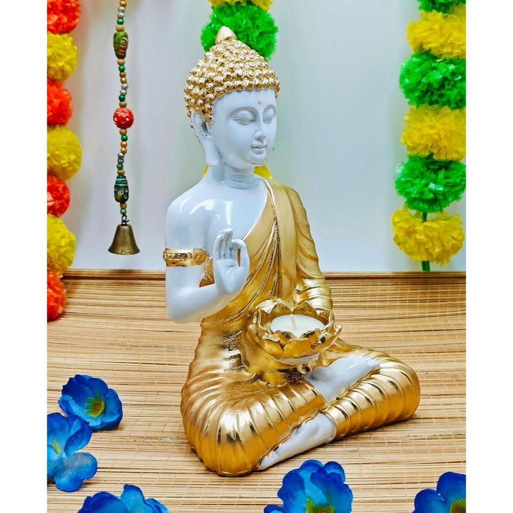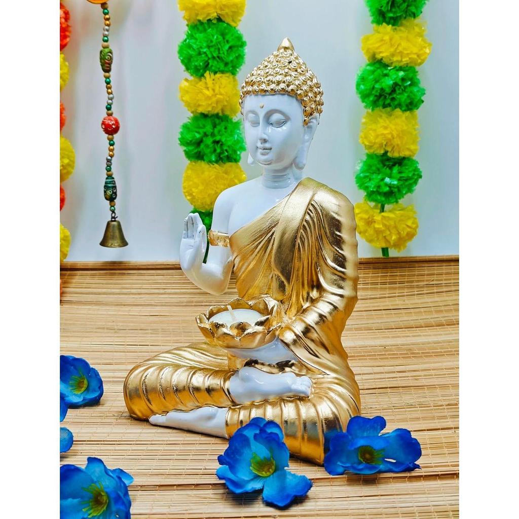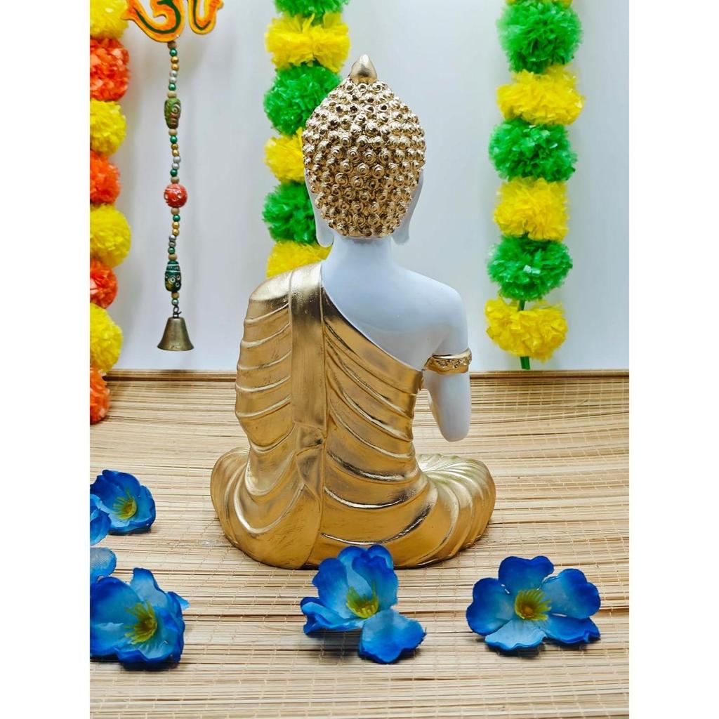 Статуя Будды-идола, экспонат для домашнего декора, украшение для дома из полистоуна, подарочный товар 1 фото (Белый, Золотой,)